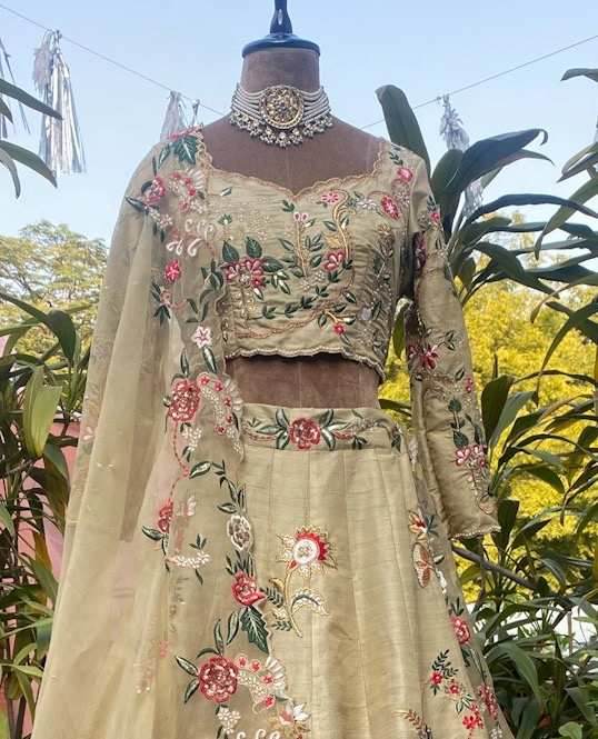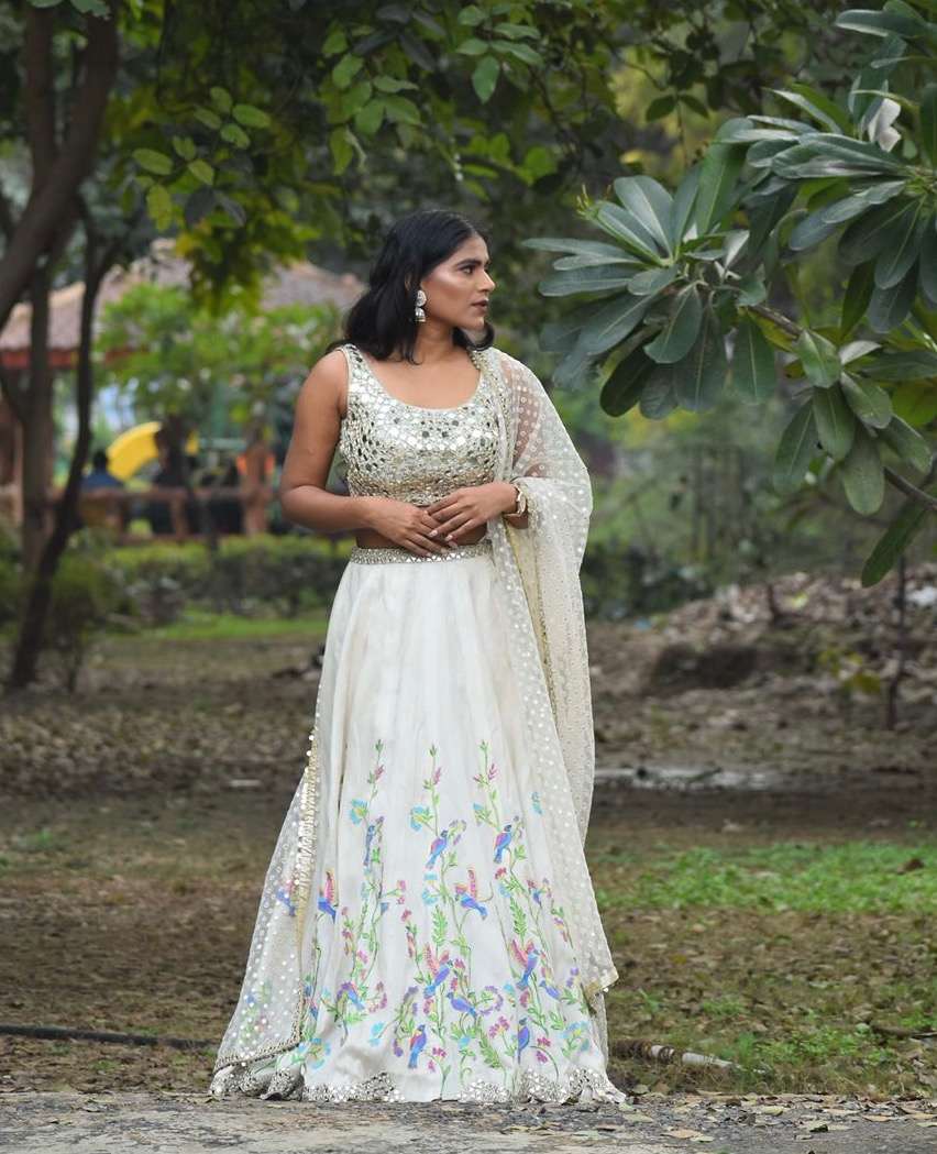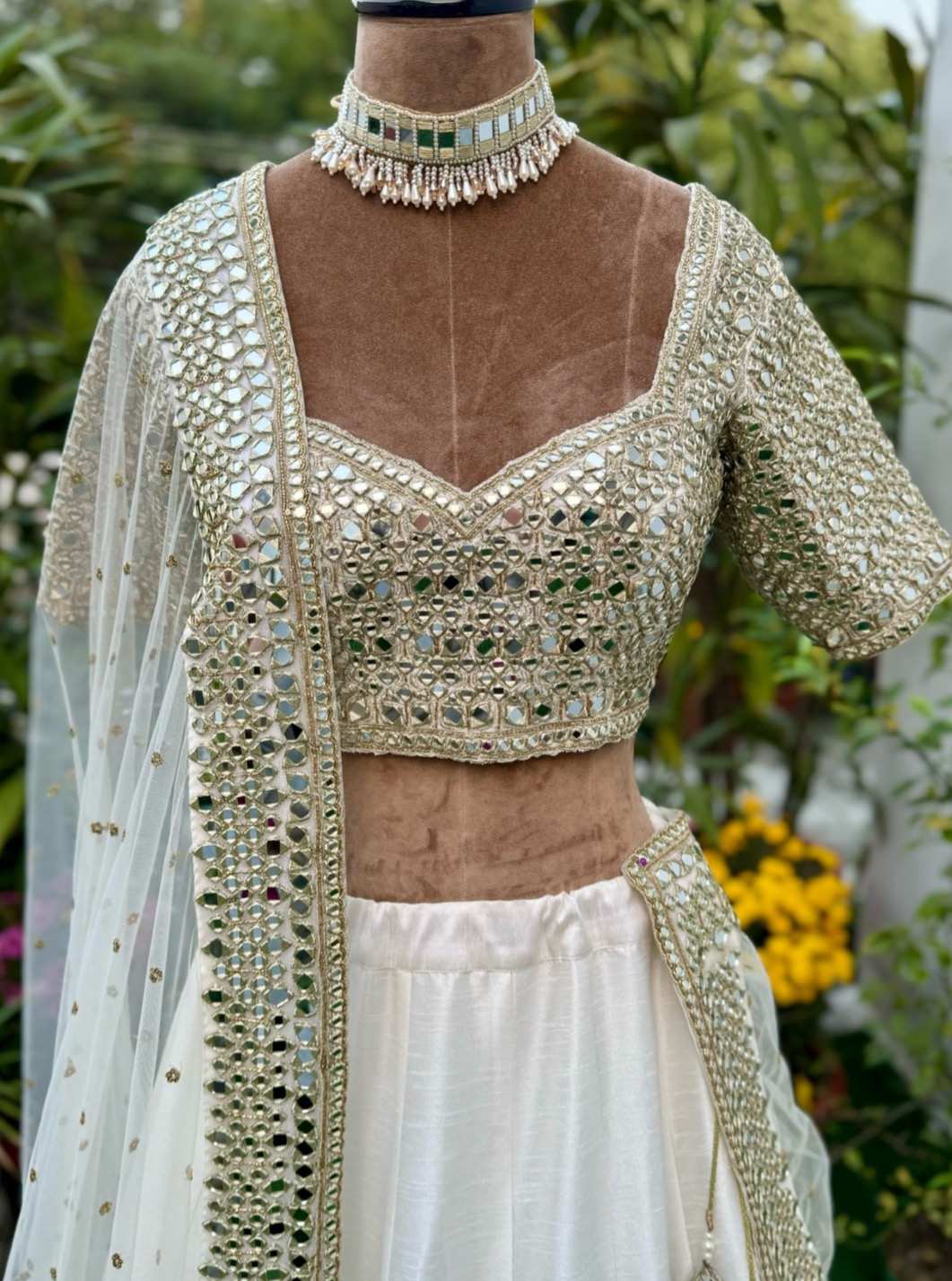 Ivory mirror embroidery lehenga