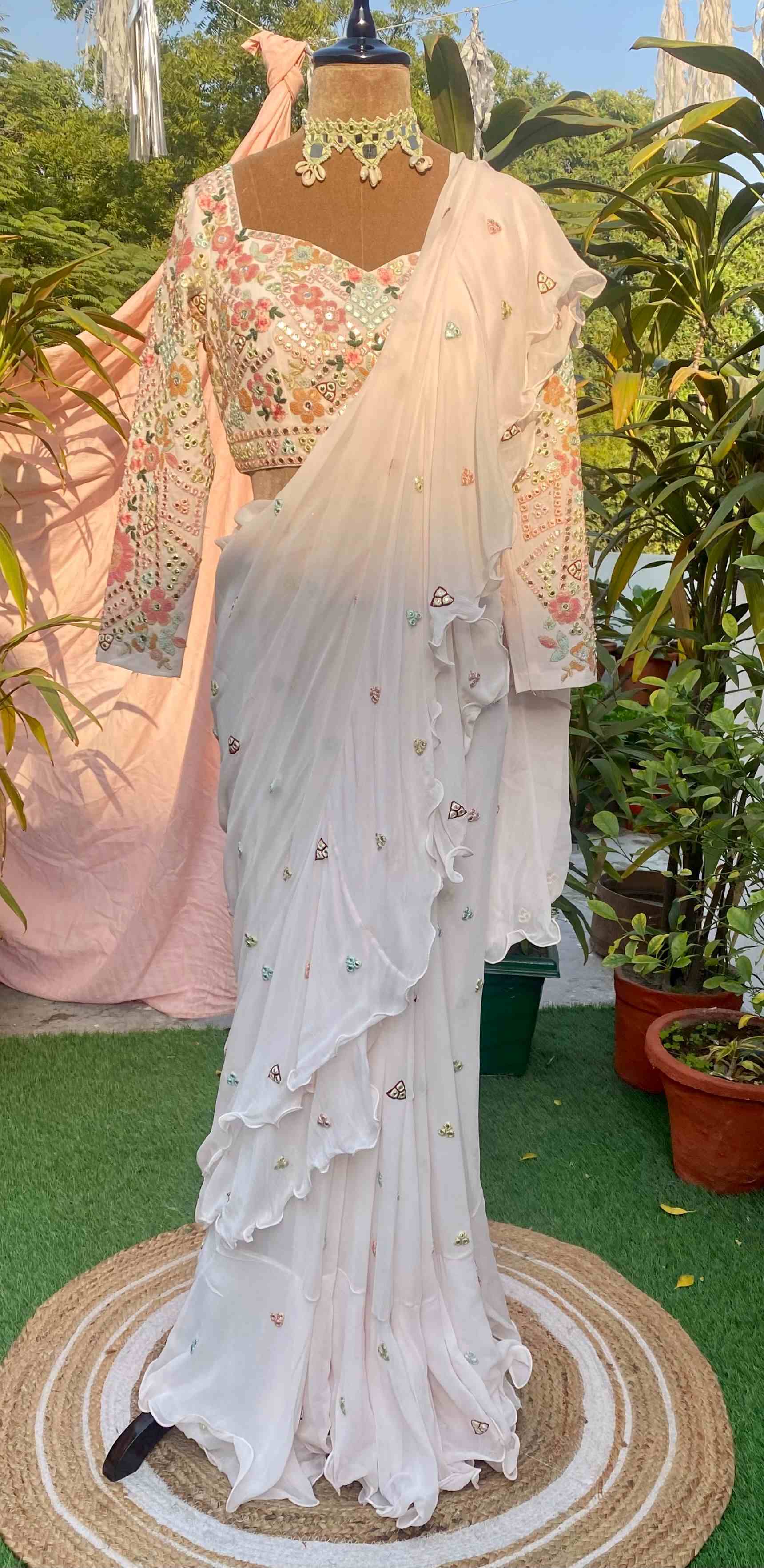 Pale Pink Ruffle Saree, Appliqué Blouse