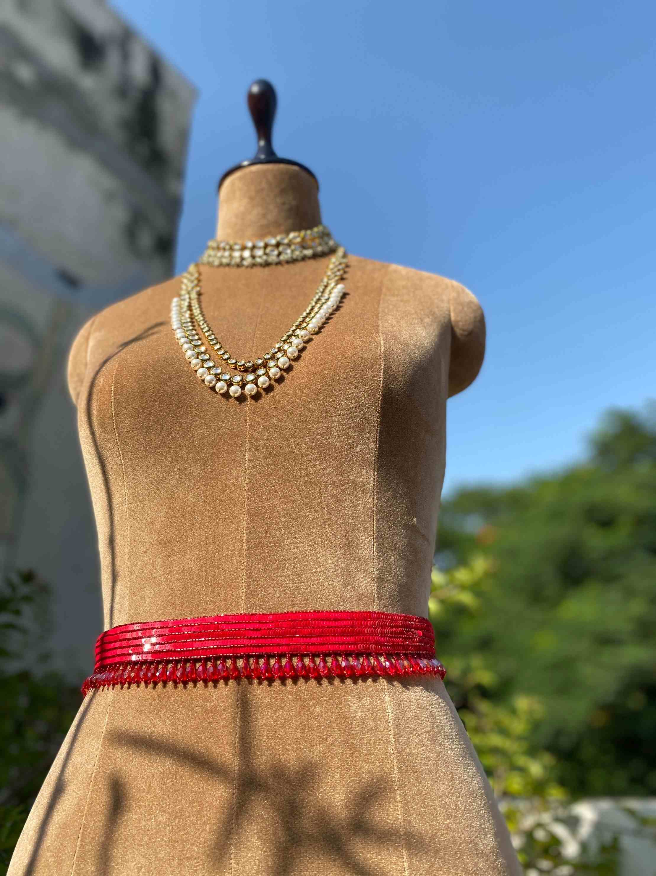 Red Sequin Belt with Crystal Drops+F14